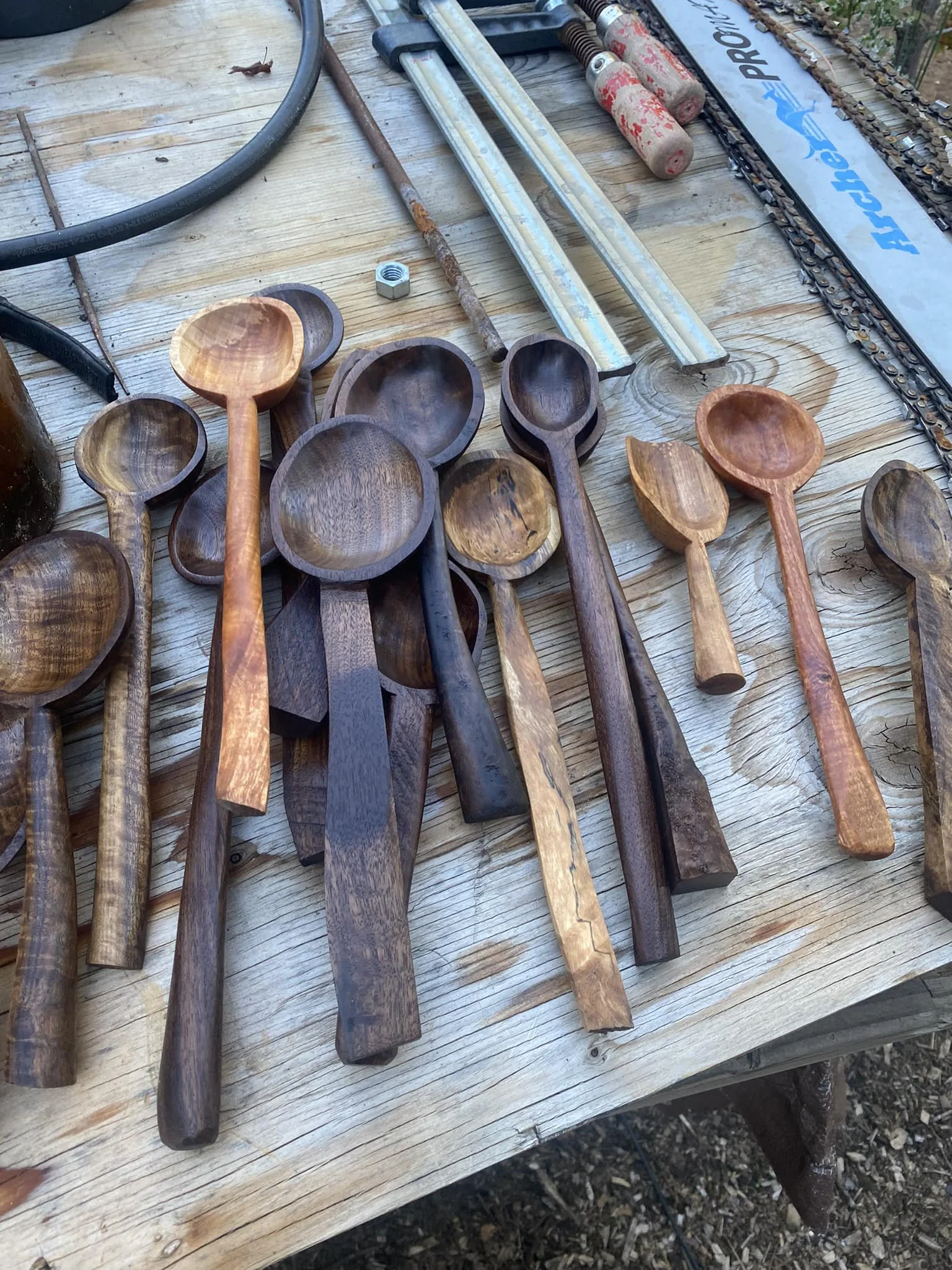 Spoon Carving is a two-day hands-on class held in the beautiful foothills east of Chico, California. Together with my friend and neighbor, Andrew Logan — a former fire captain and masterful spoon carver — we’ll guide you through the art of turning local wood into practical, beautiful kitchen utensils. I’ve been carving spoons from trees in our area for three years and find it to be one of the most relaxing, grounding, and satisfying crafts. This workshop is a chance to slow down, work with your hands, and bring home something both useful and deeply personal.